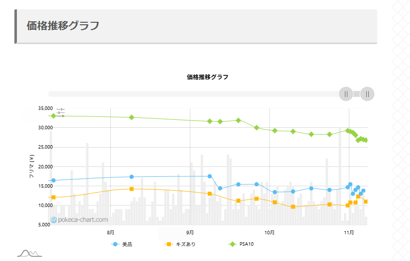 さらに、PriceChartingのデータでも、同カードのPSA10が直近3か月で20%以上の上昇を記録しています。