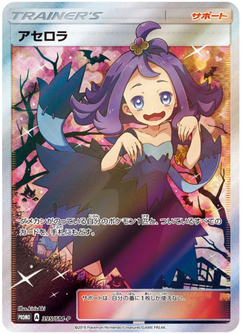 アセロラもリーリエと同様に人気の高い女の子キャラクターです。このカード自体のイラストの評価も高いことから、PSA10は110万円前後で取引されています。PSA10の枚数は500枚ほどしかなく、最盛期には300万円前後で取引が行われていたことから投資妙味は高いと言えます。